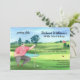 Celebrate a milestone birthday with this fun and unique “Putting Fifty” 50th Birthday Invitation. The design features a watercolor-style golf course scene with a golfer sitting thoughtfully as he lines up the perfect putt for the number 50. The playful phrase “Putting Fifty” appears in an elegant script font, adding a lighthearted touch, while the party details are displayed in a classic serif font for a clean and timeless look. This invitation is easy to customize and perfect for golf lovers celebrating their big 5-0.