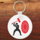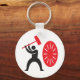 This design is a man hitting a gong. The man has a big red mallet that he is swinging into the red gong. This man hitting a gong design looks great on this Keychain