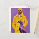Man in a Yellow Raincoat with a Purple Dog Postcard