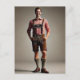 The man is dressed in classic Bavarian attire, featuring brown leather Lederhosen with intricate embroidery on the suspenders and pant legs. This is a traditional costume of Germany and Austria. His red-and-white chequered shirt is neatly tucked into the Lederhosen, with the sleeves rolled up for a relaxed yet traditional appearance. He is wearing dark leather shoes paired with knee-high socks that add a finishing touch to the outfit. The ensemble exudes cultural authenticity and charm, highlighted by his confident stance and warm smile.