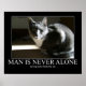 Man is Never Alone...as Long As Cat Artwork Poster
