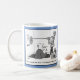 Man Playing Darts with Oversized Darts. Coffee Mug