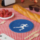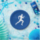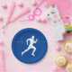 Man Running Runners Silhouette on Blue Background Paper Plate