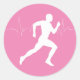 Man Running Runners Silhouette on Pink Background Classic Round Sticker