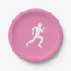 Man Running Runners Silhouette on Pink Background Paper Plate
