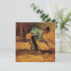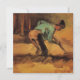 Man Stooping with Stick or Spade by Vincent van Gogh is a vintage fine art post impressionism daily life portrait painting featuring a peasant farmer working in the field on a farm performing his daily chores.