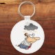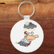 A man under a cloud that is following him. This design looks really effective on these Keychain