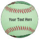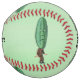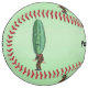 This custom softball has a man with a big green pickle for a head with a face dressed in a brown suit on a light green background. Customise your text with the template.
