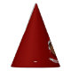 Christmas party hat with illustration of a African American or Hispanic man with short black hair and red Santa Claus hat; in red circle on a red background, with customisable text template for your name or message