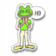 This cheerful computer-generated digital art graphic shows a man with a smiling frog head saying hi. The art is in cartoon sticker style. This funny, happy frog man was created using an image generation of the AI source DALL-E, and is sure to be fun for fans of technology, new art, and frogs!