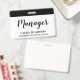 A modern script typography title business badge for a manager. Add your name and company name or region.