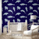 Super-cute wallpaper featuring cartoon manatees on a deep blue background. Customise and change the background colour to suit your decor.