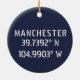 Manchester England Latitude Longitude Ceramic Tree Decoration