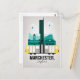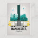 The City of Manchester, England, featuring a stylised version of its landmarks and cityscape, including a Metrolink tram, Manchester Town Hall and Old Trafford - the home of Manchester United FC.