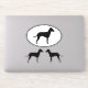 Manchester Terrier Silhouette with Natural Uncropped Floppy Ears. Oval and die cut sticker set. These durable dog silhouette decals are waterproof and scratch resistant. Stick these Manchester Terrier vinyl stickers to your laptop, phone, notebook, water bottle, helmet, skateboard, or even your car. Visit Jenn’s Doodle World for even more dog breed vinyl decals and Manchester lover’s gifts.