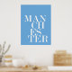 This minimalist typographic artwork proudly showcases the bustling city of Manchester, UK. Featuring crisp white text against a striking light blue background, this piece perfectly captures the vibrant energy of this iconic city. Known for its rich musical heritage, home to legendary bands like Oasis and The Stone Roses, and the passionate Manchester City football club, this artwork encapsulates the spirit of Manchester.