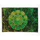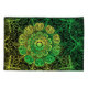Green, yellow mandala hand drawn on black background filling the whole frame in abstract, artistic design.