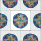 Circle abstract mandala - blue, green.pink on fabric.