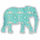 Sticker in a mixed media digital graphic of an elephant - Mandala flower pattern in turquoise, white and shades of grey / grey