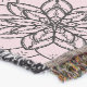 Repeating line art pattern - black outline Mandala style flowers on pale pink background