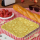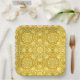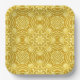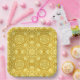 Paper Plates in an ornate, geometric flower pattern in shades of deep mustard gold with deep and pastel yellow