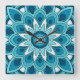 Mandala in teal green square wall clock