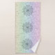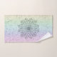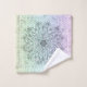 A yellow, green, violet pastel shaded mosaic pattern is the backdrop of a decorative, transparent mandala. Abstract chic.