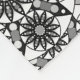 Fleece blanket in a twelve point mandala pattern in shades of graphite and silver grey, accented with black and white