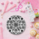 Twelve point mandala pattern paper plates in classic black and white with shades of grey / grey, from light silver to deep graphite