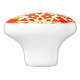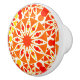 Twelve point mandala pattern knob in shades of deep to medium coral orange with mustard gold and white accents