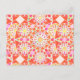 Twelve point mandala pattern in coral red, shades of pink, lime green and gold