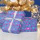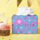 Twelve point mandala pattern wrapping paper in shades of turquoise, aqua, fuchsia and pink, outlined in dark navy