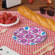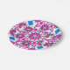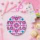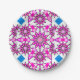 Twelve point mandala pattern in shades of pink, hot pink / fuchsia, black and white accented with cobalt blue
