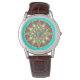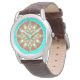 Mandala pattern in chocolate, tan and turquoise watch