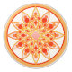 Twelve point mandala pattern in shades of coral pink, orange, mustard gold and white on a coral orange background