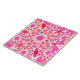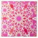 Twelve point mandala pattern in shades of fuchsia pink, peach and coral, outlined and accented with white