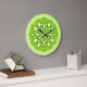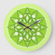 Mandala pattern in shades of lime green large clock