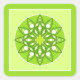 Twelve point mandala pattern in shades of pale to deep lime green, accented with white, on a lime background