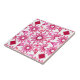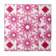 Twelve point mandala pattern in shades of pale to hot pink with a maroon / burgundy background