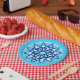 Mandala pattern in turquoise, cobalt and white paper plate
