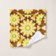 Towel set in a twelve point mandala pattern in shades of golden yellow and warm brown, outlined in black and accented with white