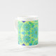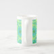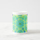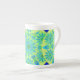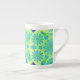 Mandala pattern, turquoise, blue, lime green bone china mug