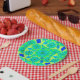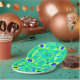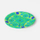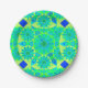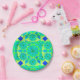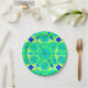 Twelve point mandala pattern in turquoise, blue, and shades of lime green accented with royal blue