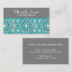 Twelve point mandala pattern in turquoise, blue, white, and shades of grey / grey on a pale, silver grey background with white text on a medium grey / grey solid background