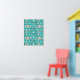 Print of a twelve point mandala pattern in turquoise, blue, white, and shades of grey / gray on a pale, silver grey background