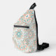 Mandala pattern sling bag in peach, teal and white with optional personalisation with a monogram in your choice of font styles, size and colour. Change or delete the sample text and circle frame in EDIT. ASSISTANCE:  For help with design modification or personalisation or if you would like coordinating items, contact the designer BEFORE ORDERING via the Zazzle Chat MESSAGE tab below or email makeitaboutyoustore@gmail.com.