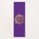 A beautiful yoga or exercise mat featuring a hand-drawn mandala design in a gold tone over a dark purple coloured background.