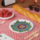 Colorful hand painted mandala design - green, yellow, red, blue, gold. Harmony and nature alignment mood.