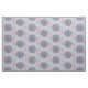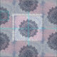 Fabric with dark blue, pink and grey mandalas graphic illustration.