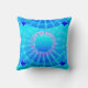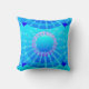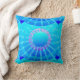 Abstract mandala pattern throw pillow in a satin gradient of overlapping discs centring around a spoked wheel of stars - shades of turquoise / peacock and aqua, accented with soft violet